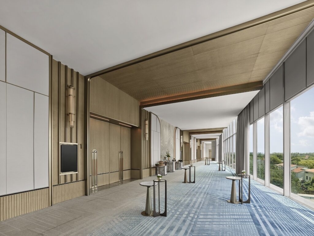 酒店900平方米挑高无柱大宴会厅,“流光溢彩”水晶灯璀璨闪耀,打造沉浸式光影盛境。典雅前厅与落地幕墙相映生辉,视野开阔无阻,辉映幸福笑靥。无论中式典雅或西式浪漫,每一场婚礼都在这里成为独一无二的动人篇章。酒店为新娘特别设置专属妆阁,私密而典雅的空间让新娘在仪式前尽享静谧时光。优雅登场的瞬间,便是全场瞩目的美好绽放。